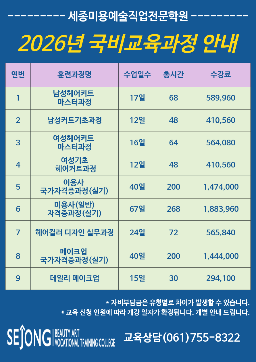세종미용예술 직업전문학원과